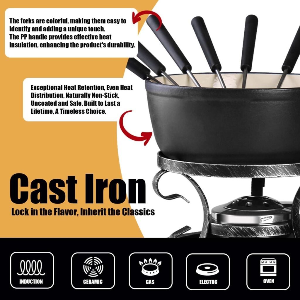 ![]() | Artestia Cast Iron Fondue Pot Set | • Heavy cast iron • Excellent heat retention • Stovetop compatible • Traditional style | View on Amazon |