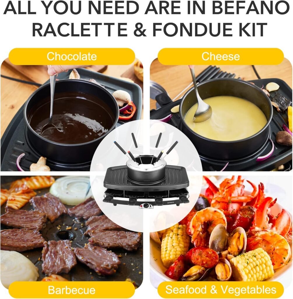 ![]() | Befano Electric Raclette BBQ Grill | • Grill + fondue combo • Multiple raclette trays • Adjustable heat • Great for meat & cheese | View on Amazon |