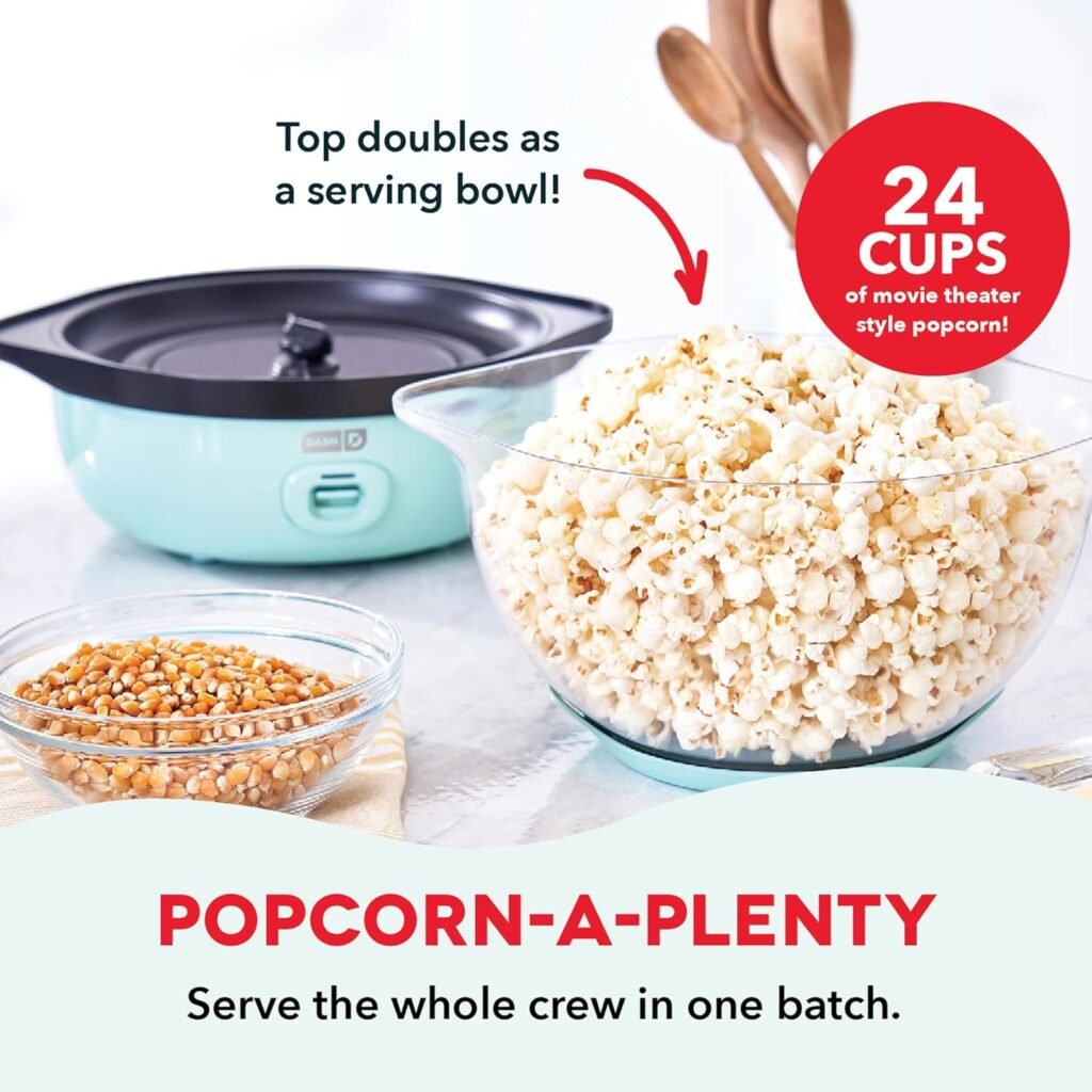![]() | Dash SmartStore Deluxe Stirring Popcorn Maker | • Stirring bar pops kernels thoroughly • 24-cup capacity • Bowl doubles as serving dish • SmartStore design for easy storage | View on Amazon |